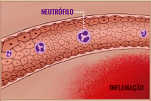 Uma das etapas iniciais da resposta inflamatória acontece quando o organismo dispara um alerta que faz com que os neutrófilos presentes no sangue migrem até o tecido inflamado. Para isso, passam por um processo de adesão que envolve uma molécula chamada P-selectina que funciona como uma espécie de ímã unindo neutrófilos e células epiteliais, que revestem a parede dos vasos sanguíneos.